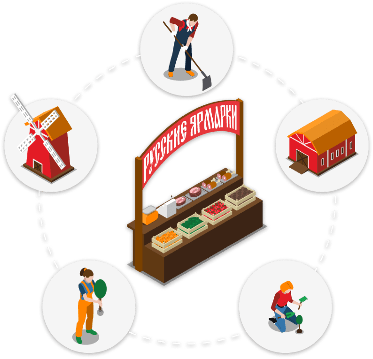 Возрождение и развитие ярмарочной торговли с учетом национального и конфессионального разнообразия населения, культурной самобытности народов России, традиций народных промыслов в формате, сочетающем торговлю, просвещение и развлечения.